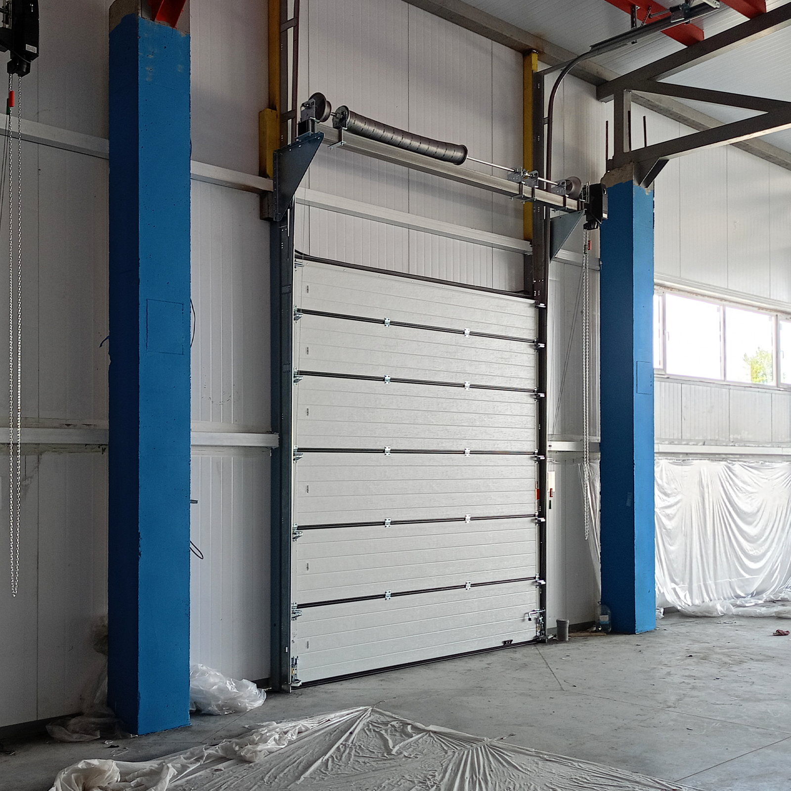 В случаях, когда на предприятии необходимо компенсировать высоту перемычки, если текущей недостаточно, есть возможность установить фальш панель для промышленных ворот.