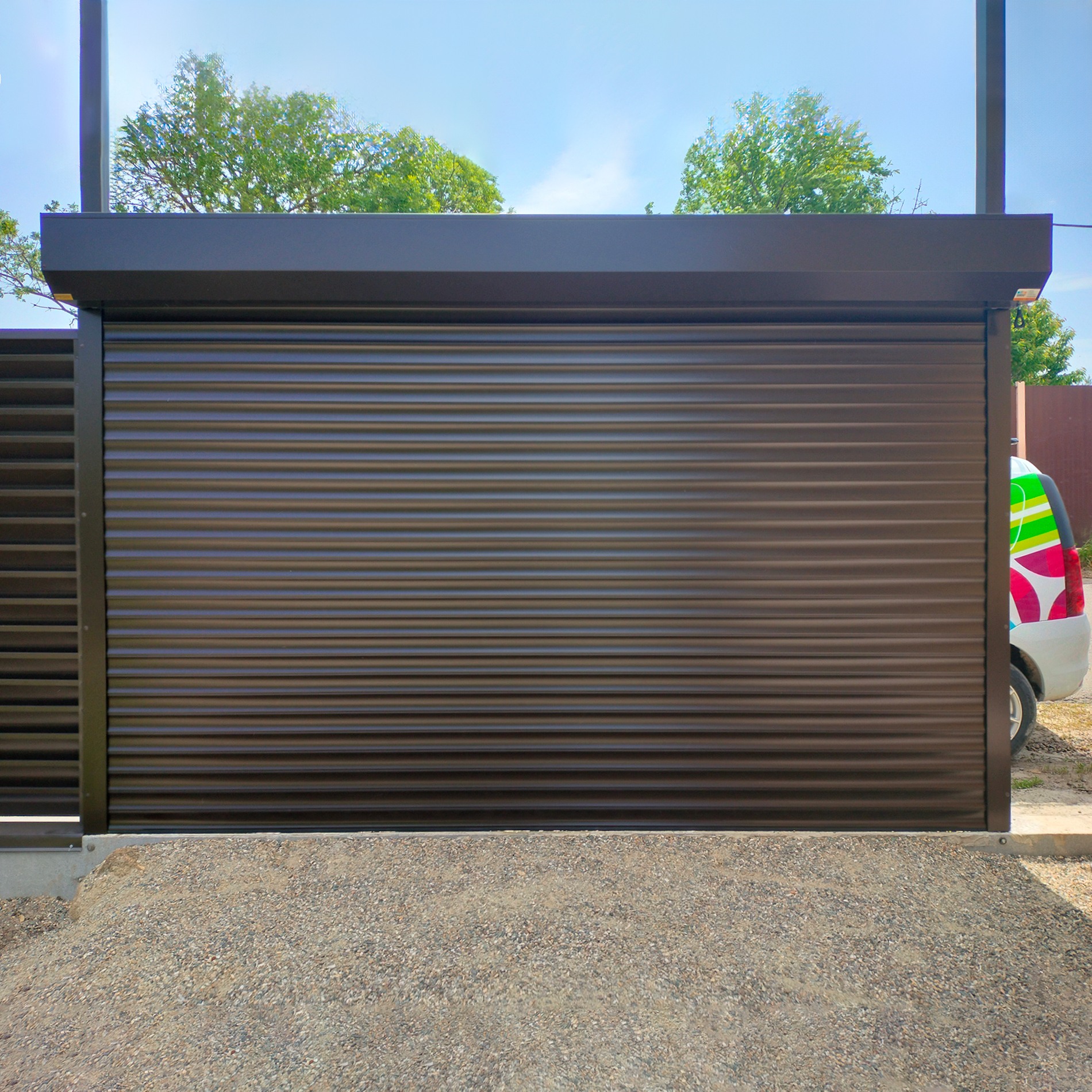 При желании клиента мы можем установить дополнительную защиту для ворот темных оттенков при условии, что они постоянно освещаются солнцем или разница температур наружней и внешней поверхности достигает 40 градусов.