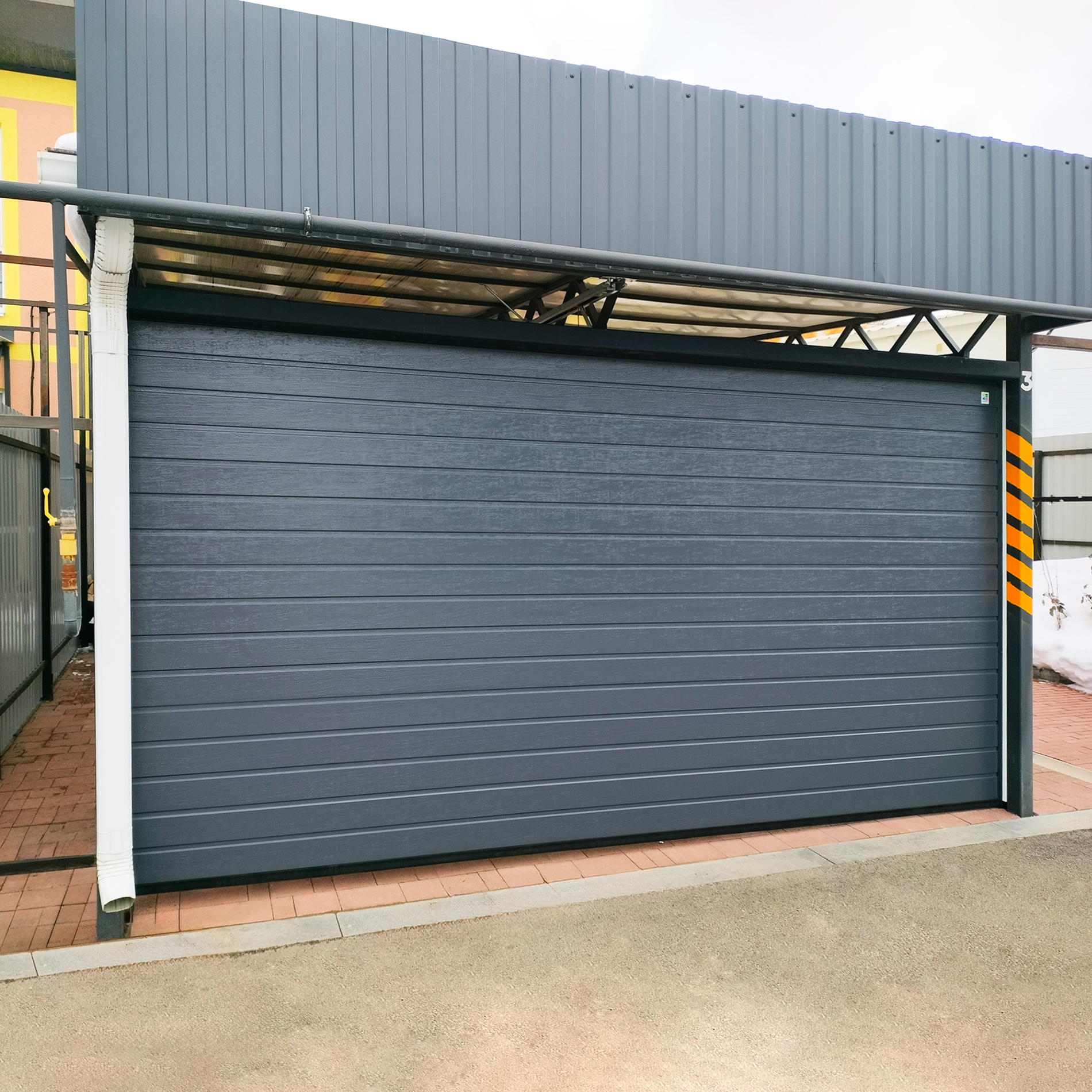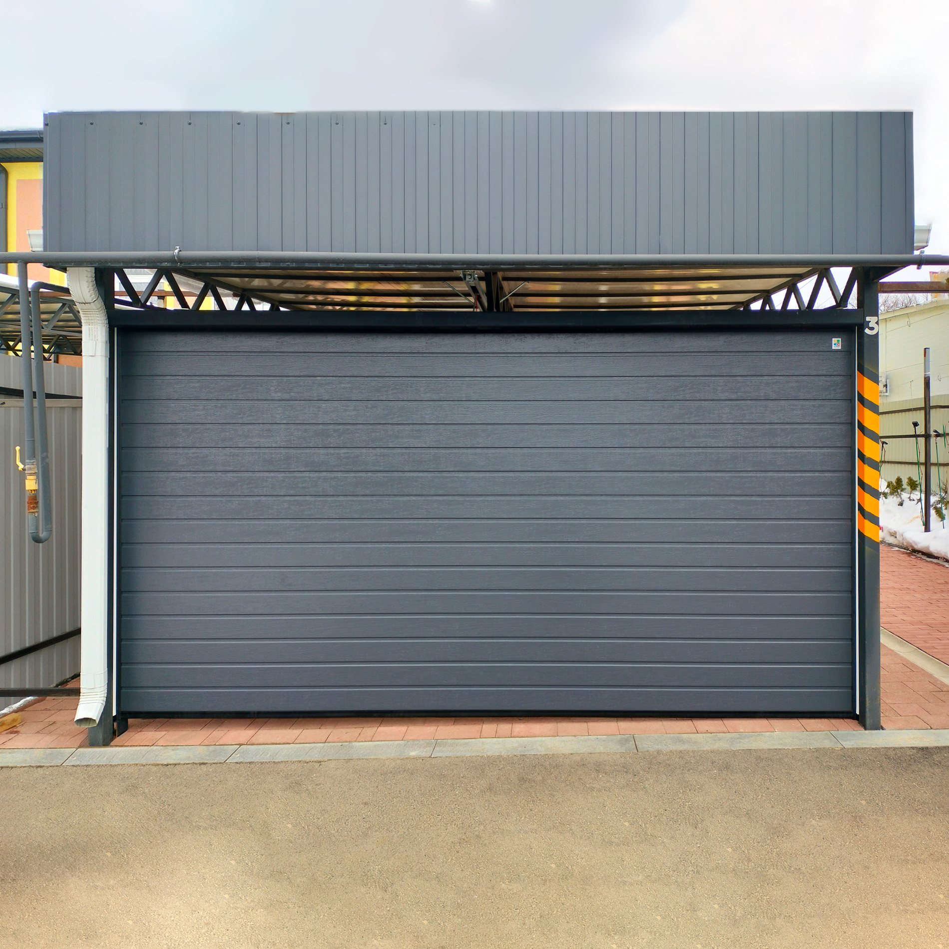 При желании клиента мы можем установить дополнительную защиту для ворот темных оттенков при условии, что они постоянно освещаются солнцем или разница температур наружней и внешней поверхности достигает 40 градусов.
